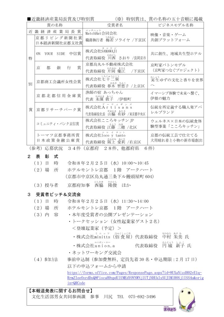 受賞内容の詳細は、京都府の報道発表資料をご覧ください。
